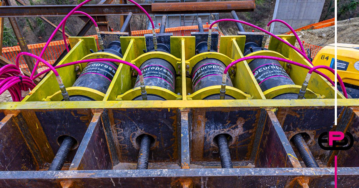 Europress is supplying hydraulic launching equipment with threaded bars for the construction of the Tre Vescovi viaduct in Casacastalda (Valfabbrica, Perugia), a key infrastructure project along the Perugia-Ancona highway. Our systems have been used to support operations in two main phases: