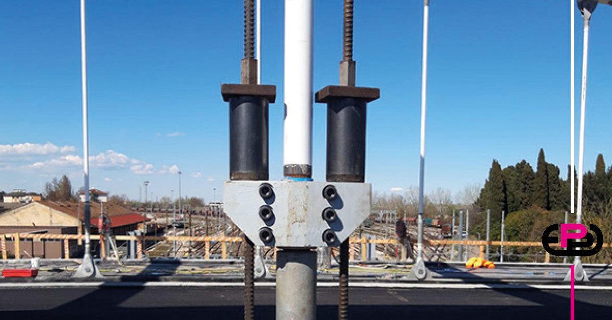 Durante i lavori di adeguamento statico e consolidamento del nuovo impalcato del ponte cavalcaferrovia Teodorico, sono stati impiegati sistemi di cilindri forati CMF in abbinamento a pompe PN ad alta pressione, per consentire la posa dei tiranti di connessione tra l’impalcato e le arcate principali.