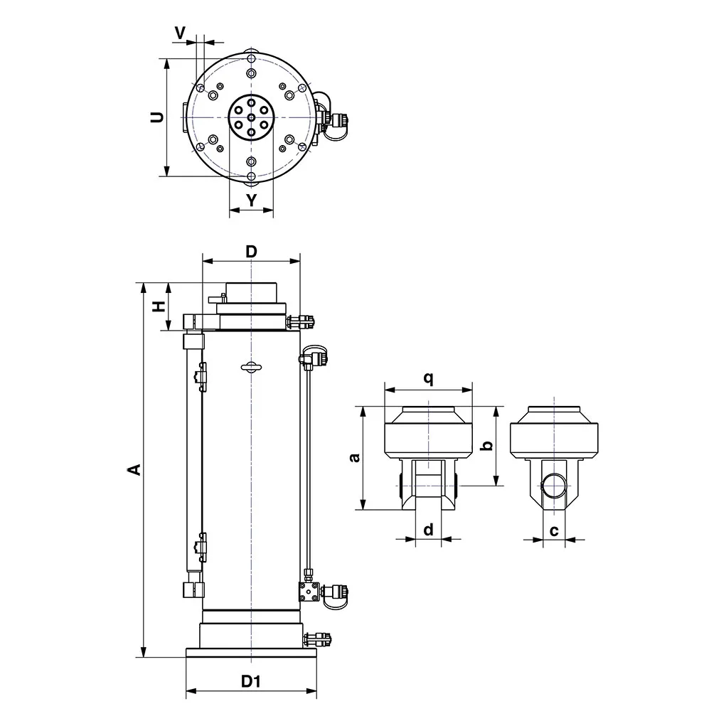 Le testate dotate di morsetti a cuneo sono comandate idraulicamente per bloccare e sbloccare i cunei in modo da poter utilizzare i cilindri anche per operazioni di abbassamento. Una valvola di ritegno pilotata è montata sulla bocca di mandata del cilindro come sicurezza da rotture di tubi e per controllare la discesa sotto carico.